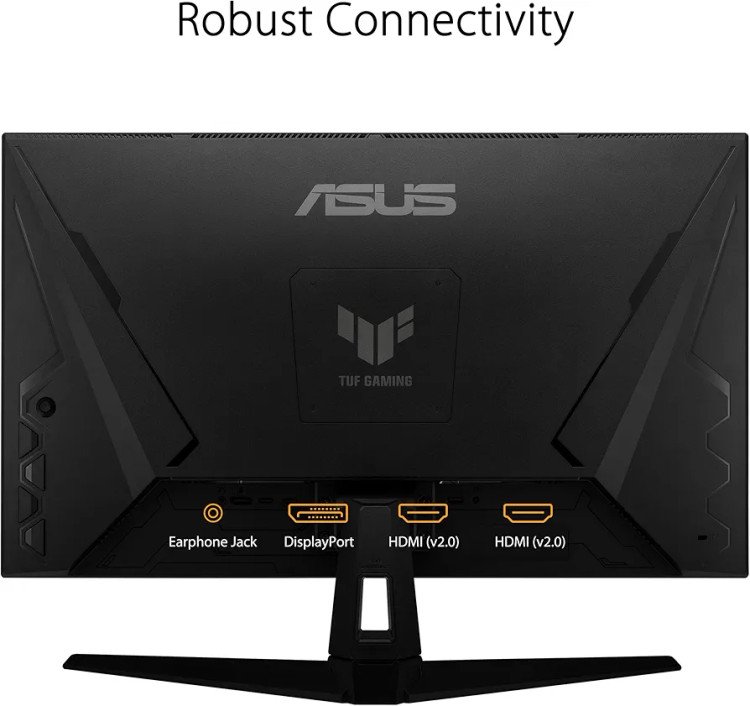 طراحی ساده و مینیمال پایه باریک این محصول نیز ظاهری شکیل و زیبا به مانیتور میدهد. گزینههای ارتباطی متعدد مانیتور ایسوس مدل ASUS TUF GAMING VG27AQ3A دارای درگاههای تصویری مختلفی شامل یک پورت Display 1.2 و دو درگاه HDMI 2.0 است تا محتوای با کیفیت بالا به راحتی انتقال یابد.